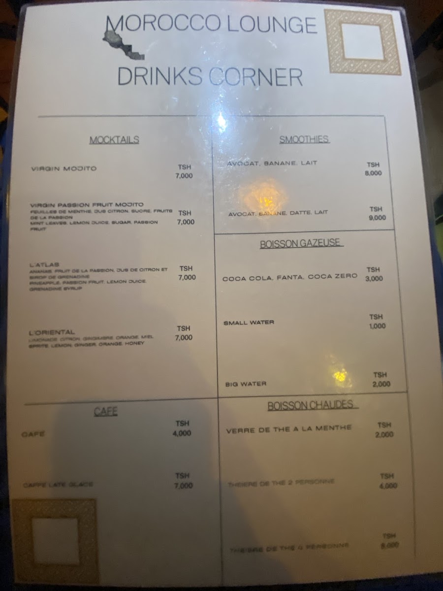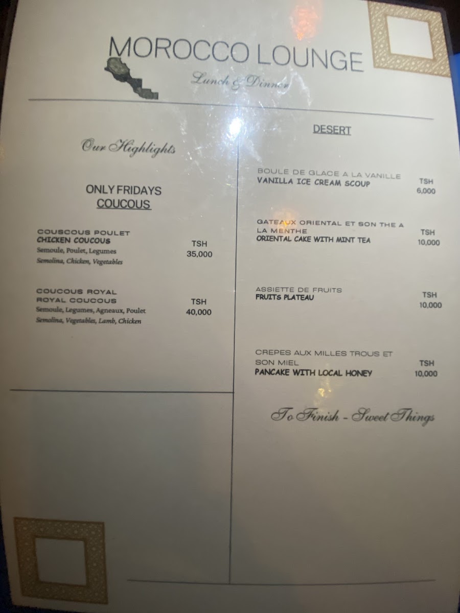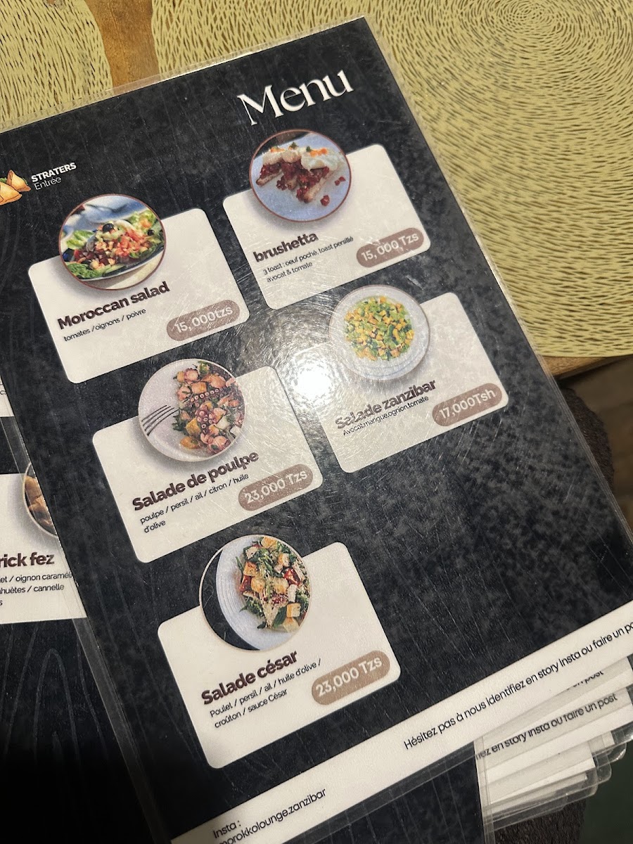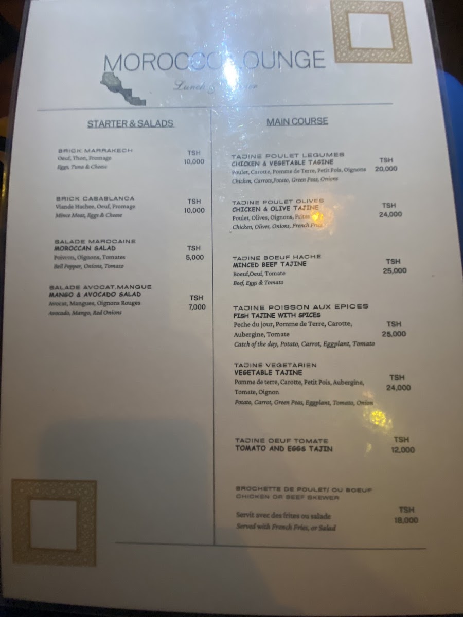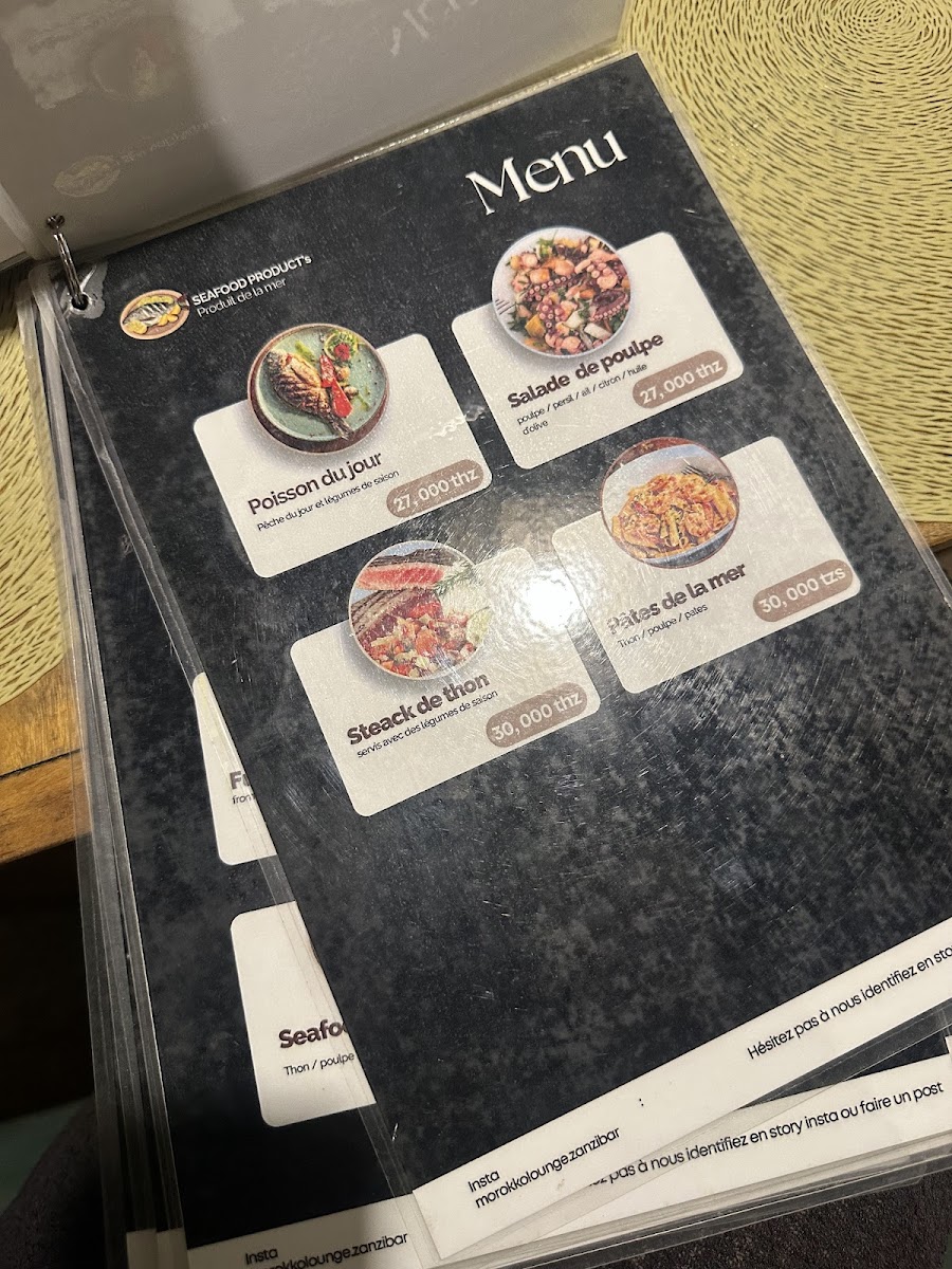Overall, the menu at Morokko Lounge Zanzibar Restaurant brings together a selection of traditional and fusion dishes, ensuring that there is something for every palate. Whether you're in the mood for rich stews, grilled meats, or vegetarian options, this restaurant is sure to provide a memorable culinary experience.